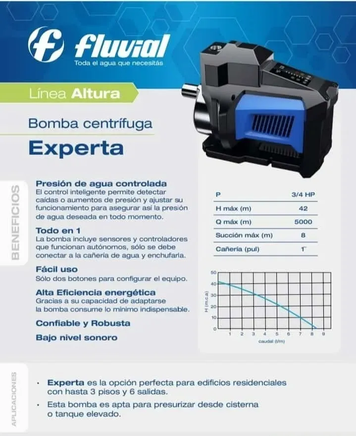 Bomba Presurizadora Velocidad Variable Fluvial Modelo Experta Hasta 6 Consumos