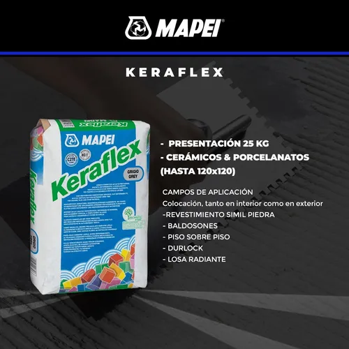 Pegamento Piso Sobre Piso Losa Radiante Keraflex 25 Kg Mapei